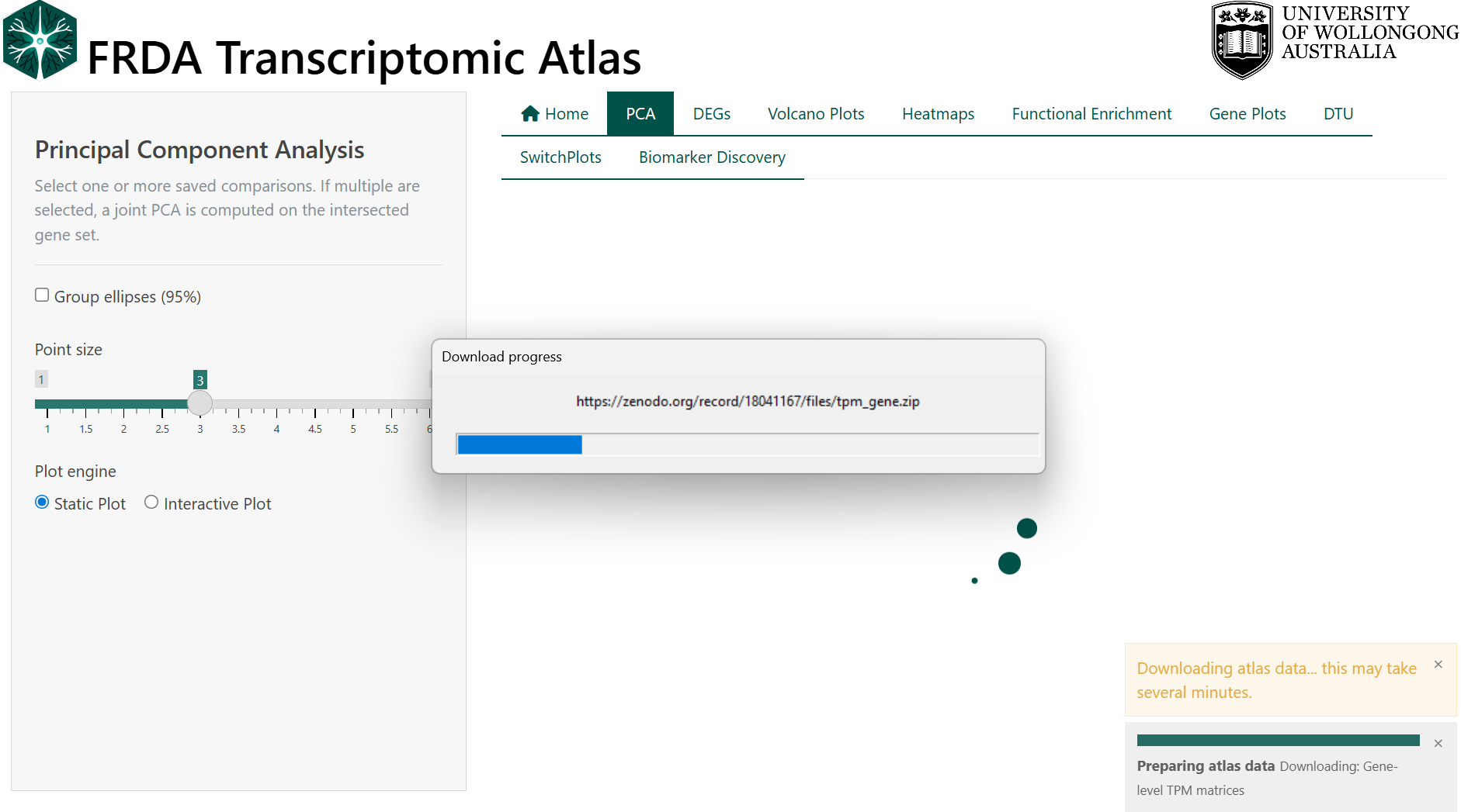 run_app()- FRDA Transcriptomic Atlas will open in a new window.
